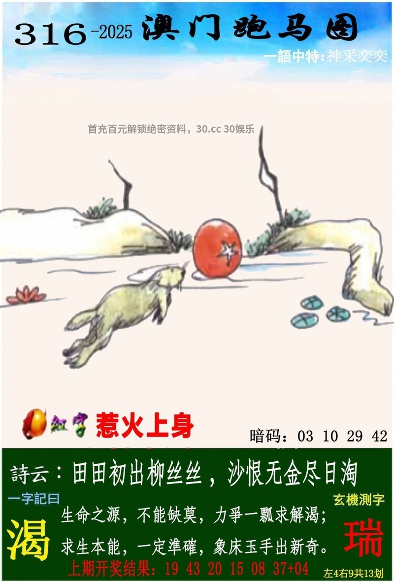 | 316期:五肖 | 羊虎兔马鸡 | 开:马24 |